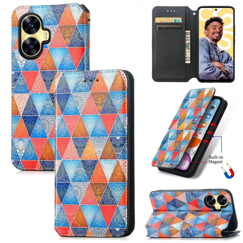 Θήκη για Realme C55 CaseNeo Πολύχρωμη Μαγνητική Δερμάτινη Θήκη Τηλεφώνου (Ρόμβος Μαντάλα)