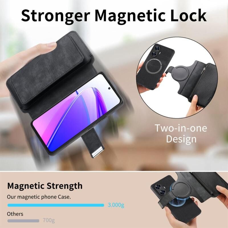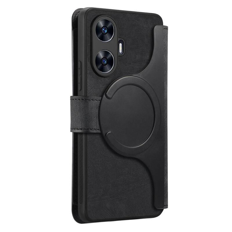For Realme C55 CaseNeo MagSafe RFID Anti-theft Zipper Wallet Retro Leather Phone Case(Black) (CaseNeo)