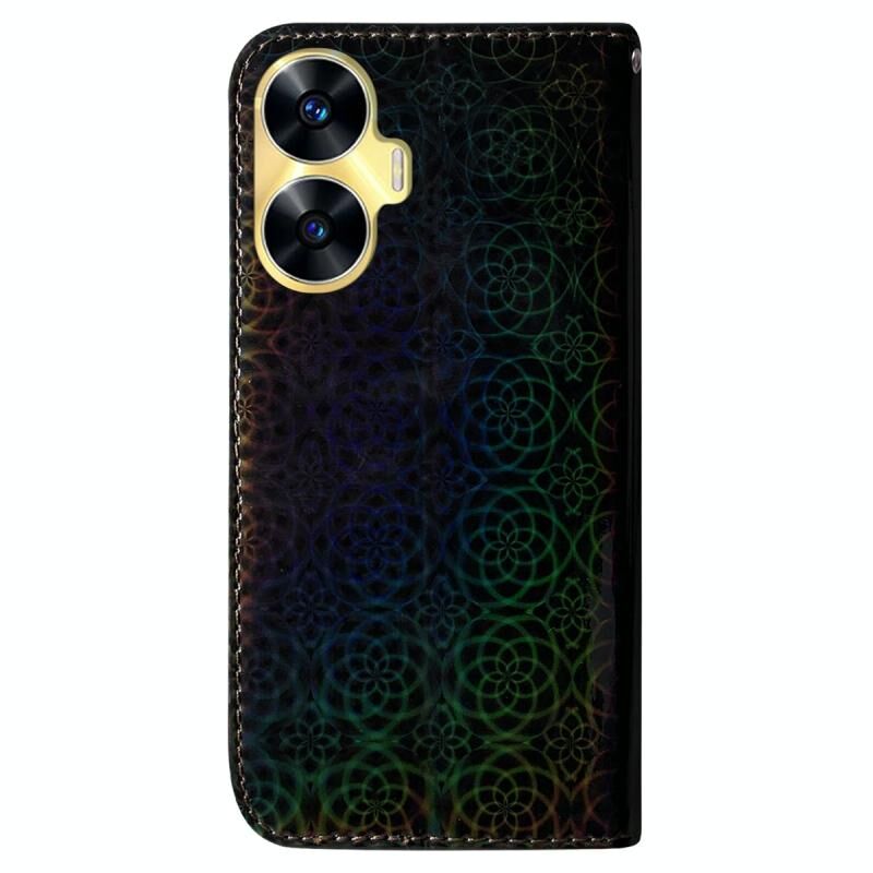 Για Realme C55 Πολύχρωμο μαγνητική πόρπη δερμάτινη θήκη τηλεφώνου (Μαύρο)