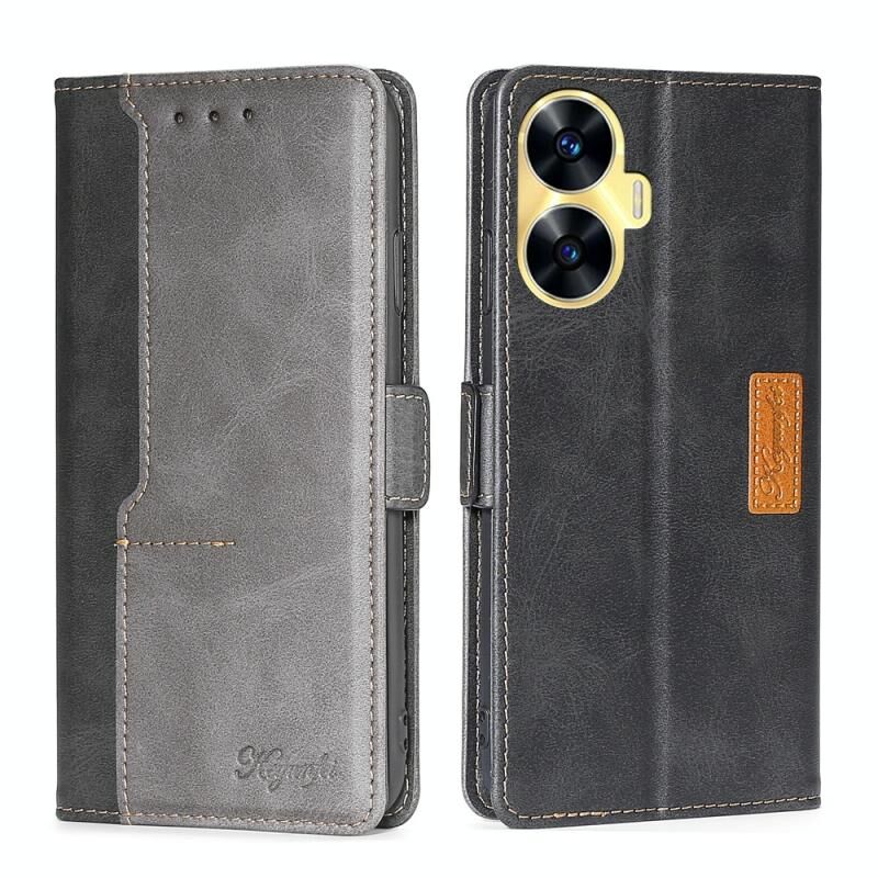 Για Realme C55 αντίθεση χρώμα πλευρά πόρπη δερμάτινη θήκη τηλεφώνου (μαύρο + γκρι)