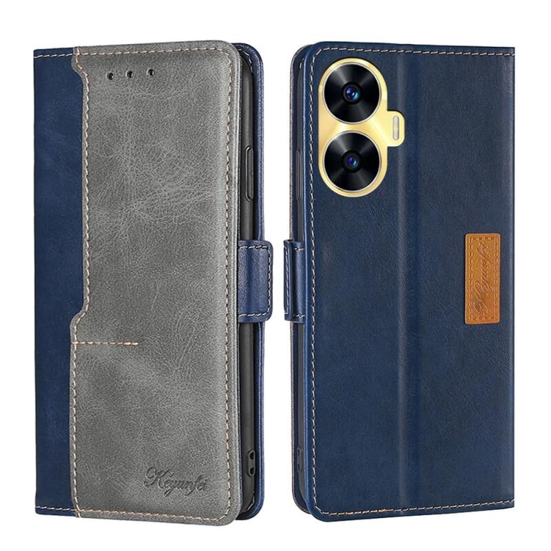Για Realme C55 αντίθεση χρώμα πλευρά πόρπη δερμάτινη θήκη τηλεφώνου υπόθεση (μπλε + γκρι)