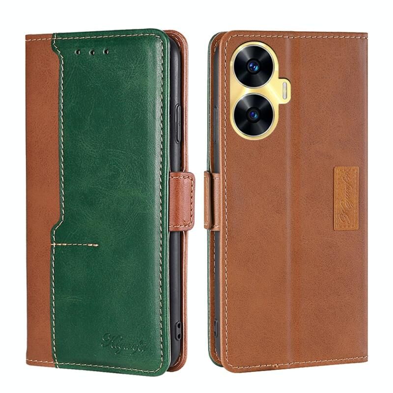 Για Realme C55 αντίθεση χρώμα πλευρά πόρπη δερμάτινη θήκη τηλεφώνου υπόθεση (ανοιχτό καφέ + πράσινο)