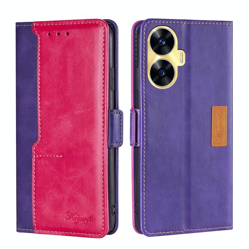 Για Realme C55 αντίθεση χρώμα πλευρά πόρπη δερμάτινη θήκη τηλεφώνου υπόθεση (μωβ + Rose Red)