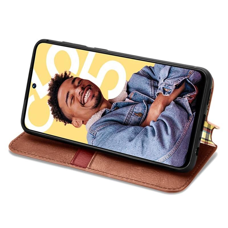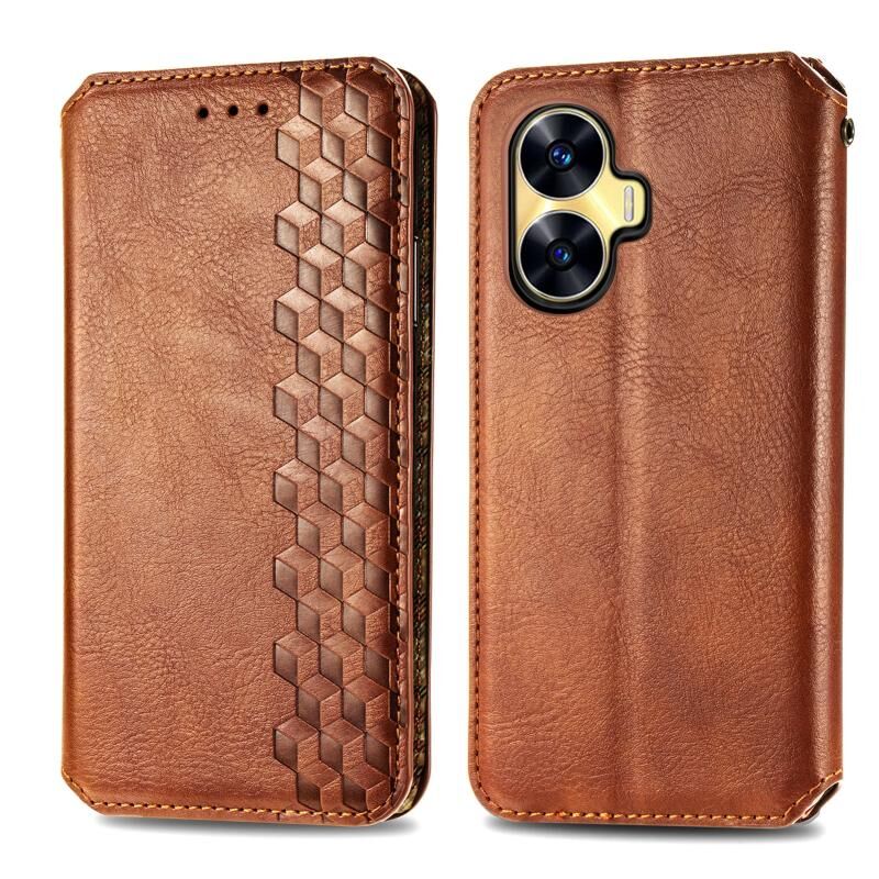 Για Realme C55 Cubic Grid Πιεσμένο μαγνητικό δέρμα τηλέφωνο υπόθεση (καφέ)