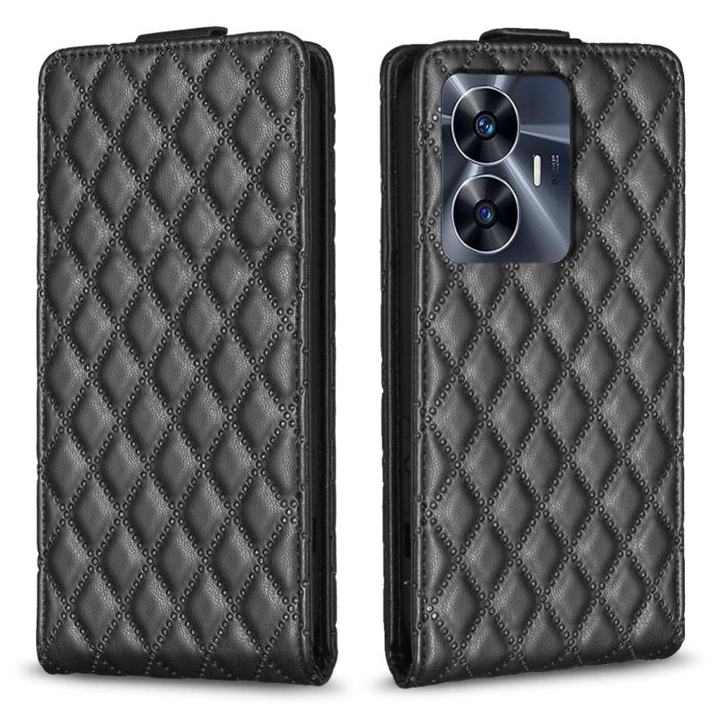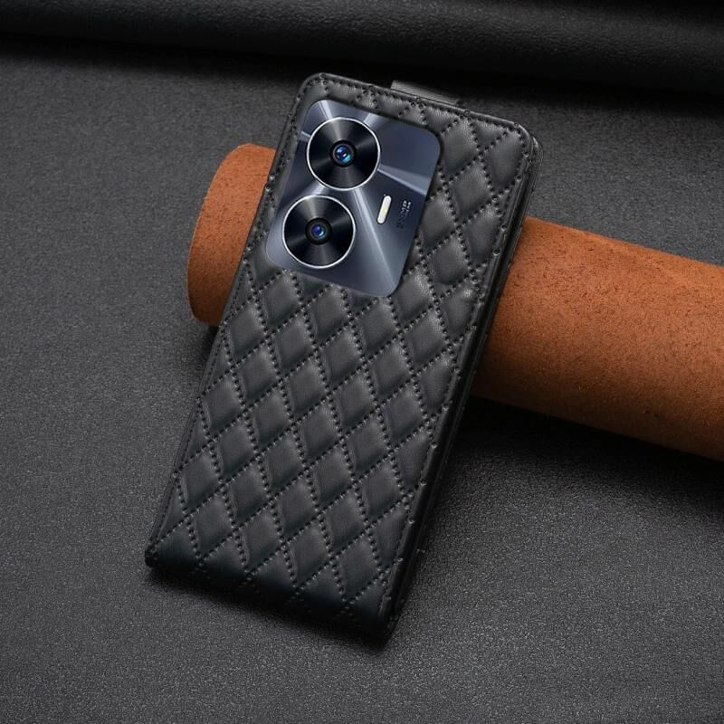 Θήκη Δερμάτινη Flip με Διαμαντένιο Πλέγμα για Realme C55 (Μαύρο)