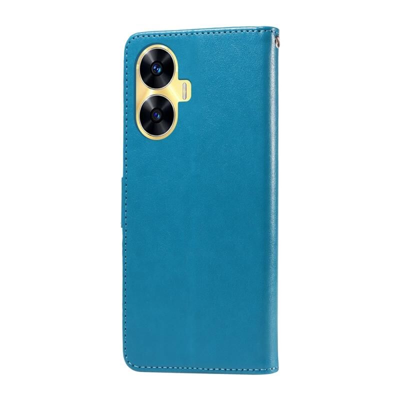 For Realme C55 Embossed Butterfly Flowers Leather Phone Case(Blue)