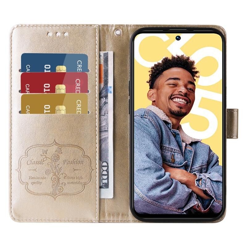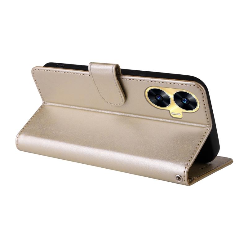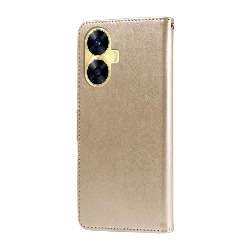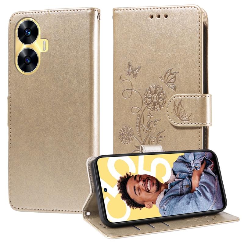 For Realme C55 Embossed Butterfly Flowers Leather Phone Case(Gold)
