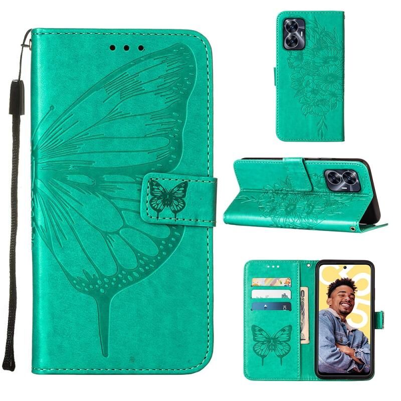 Θήκη τηλεφώνου από δέρμα με ανάγλυφο σχέδιο πεταλούδας για Realme C55 (Σκούρο Μωβ)