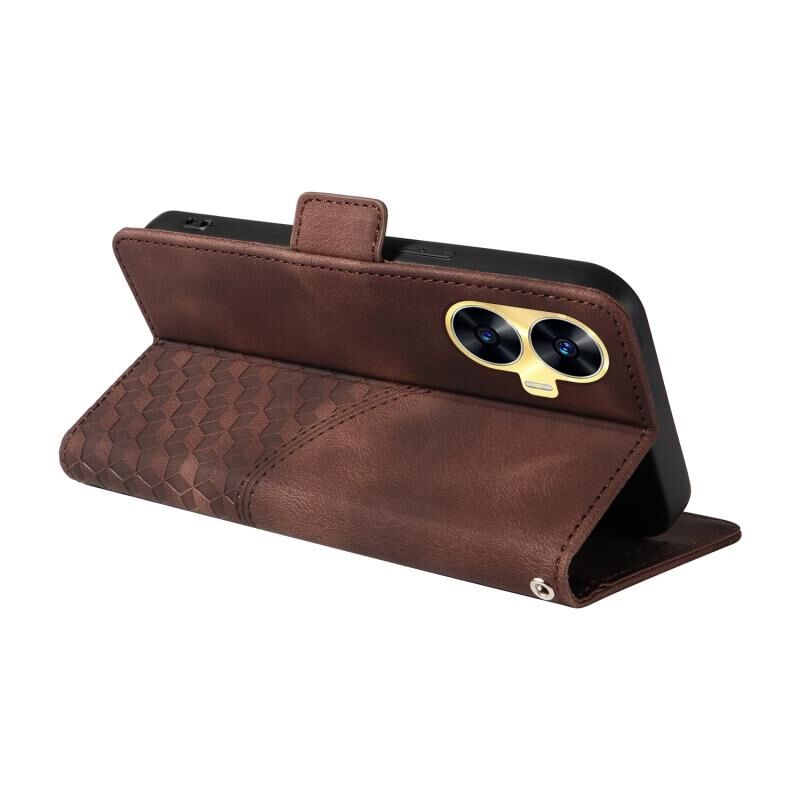 For Realme C55 Embossed Rhombus Starry Leather Phone Case(Brown)