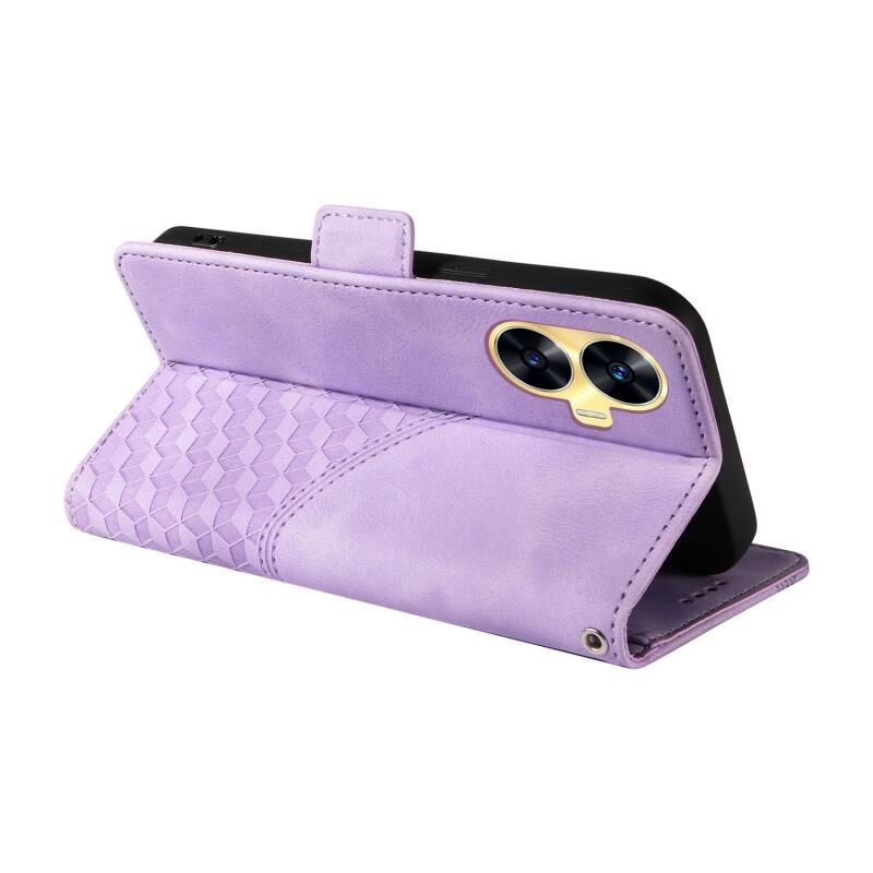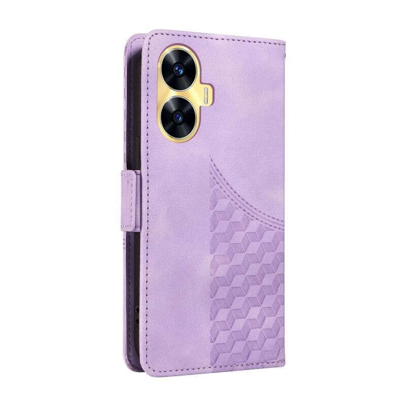 For Realme C55 Embossed Rhombus Starry Leather Phone Case(Purple)