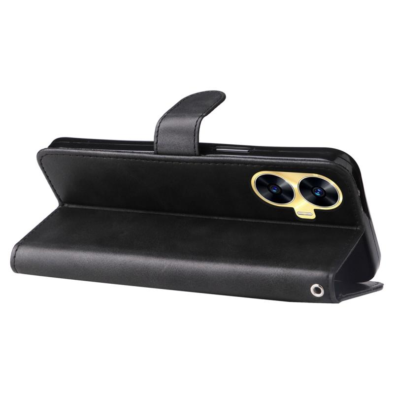 For Realme C55 Fashion Calf Texture Zipper Leather Phone Case(Black)