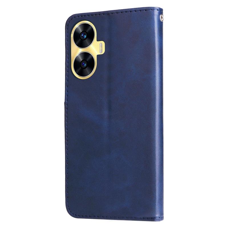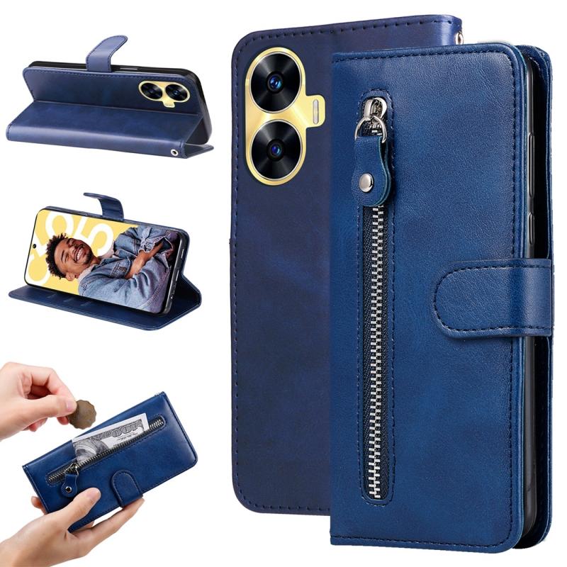 For Realme C55 Fashion Calf Texture Zipper Leather Phone Case(Blue)