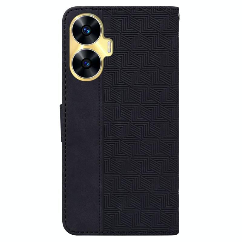 Για Realme C55 Γεωμετρική ανάγλυφη δερμάτινη θήκη τηλεφώνου (Μαύρο)