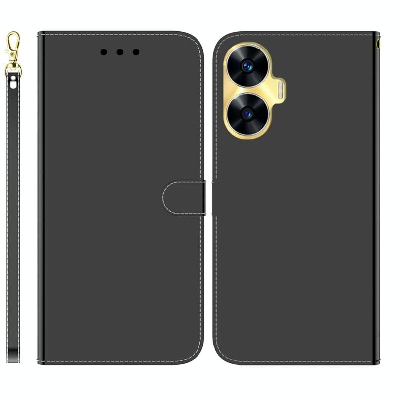 Για Realme C55 Απομιμητικά καθρέφτη επιφάνεια δέρμα τηλέφωνο υπόθεση (Μαύρο)