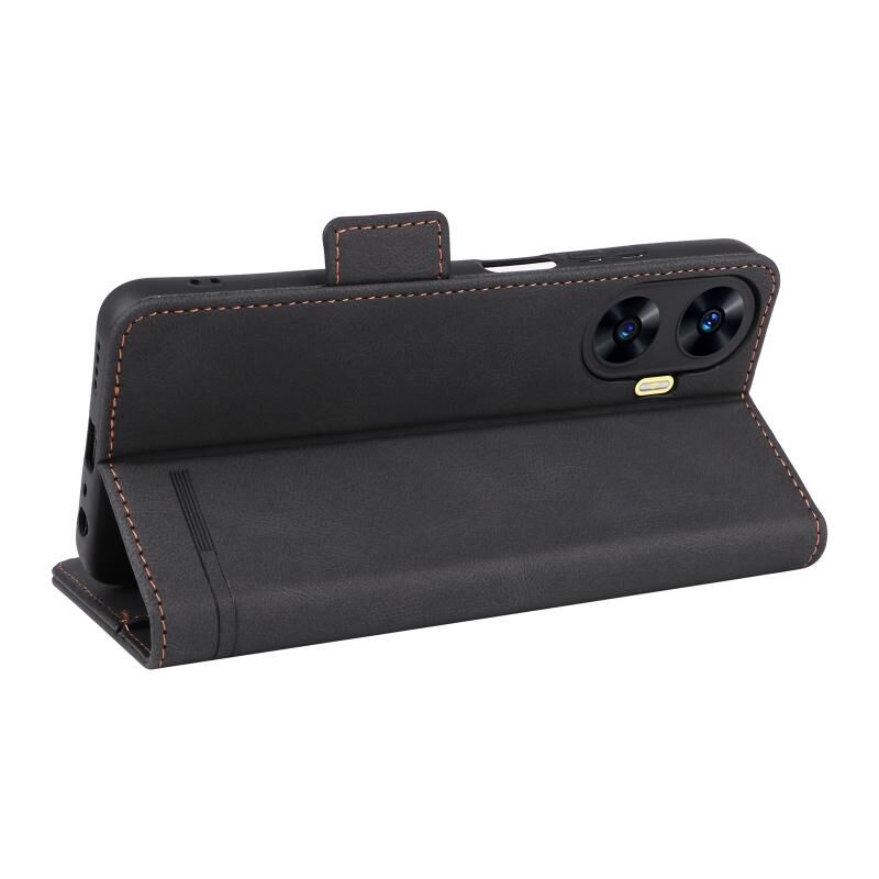 Για Realme C55 Μαγνητικό κούμπωμα Δερμάτινη θήκη τηλεφώνου (Μαύρο)