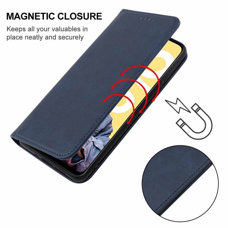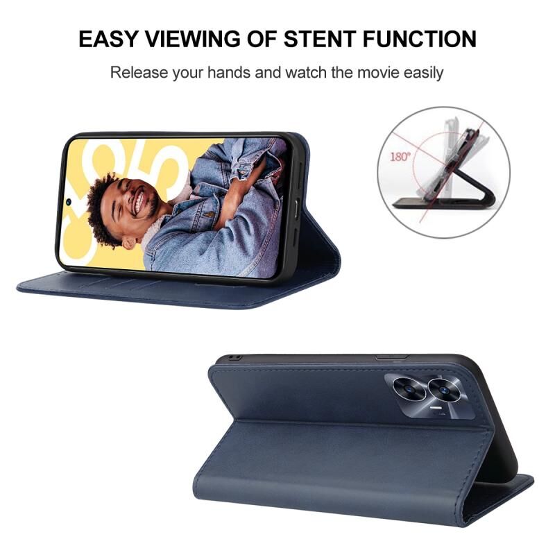 Για Realme C55 μαγνητικό κλείσιμο δερμάτινη θήκη τηλεφώνου (μπλε)