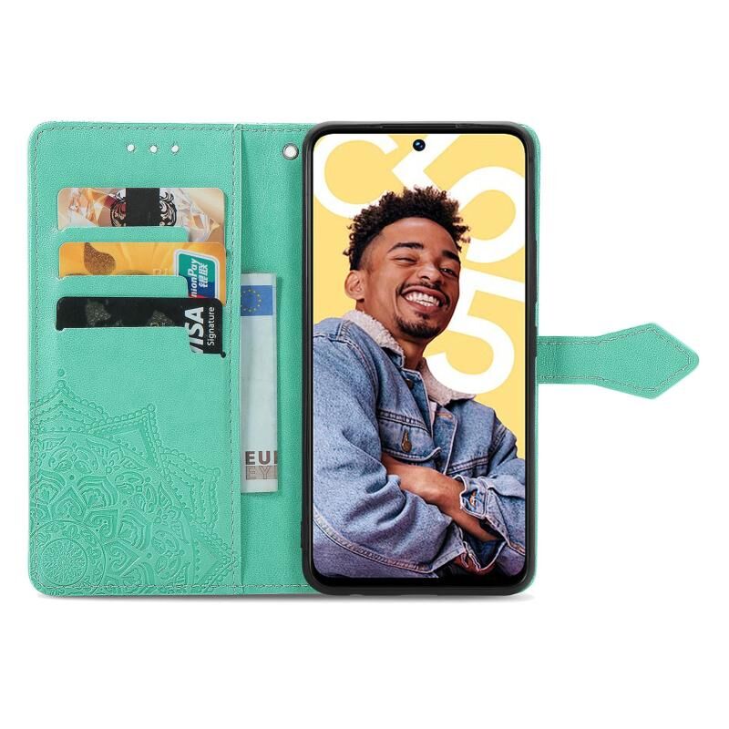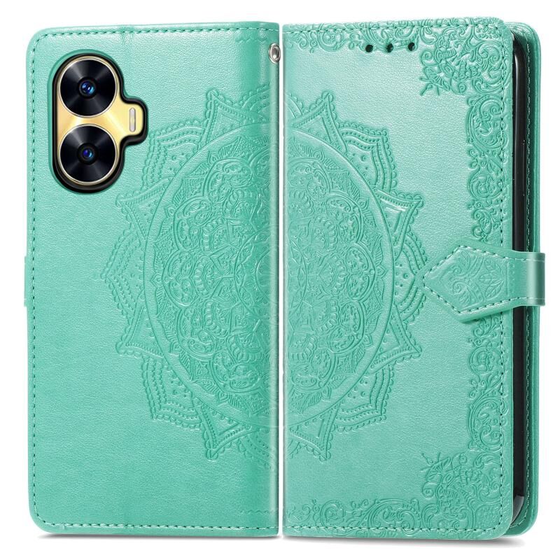 Για Realme C55 Mandala λουλούδι ανάγλυφο δερμάτινη θήκη τηλεφώνου (πράσινο)