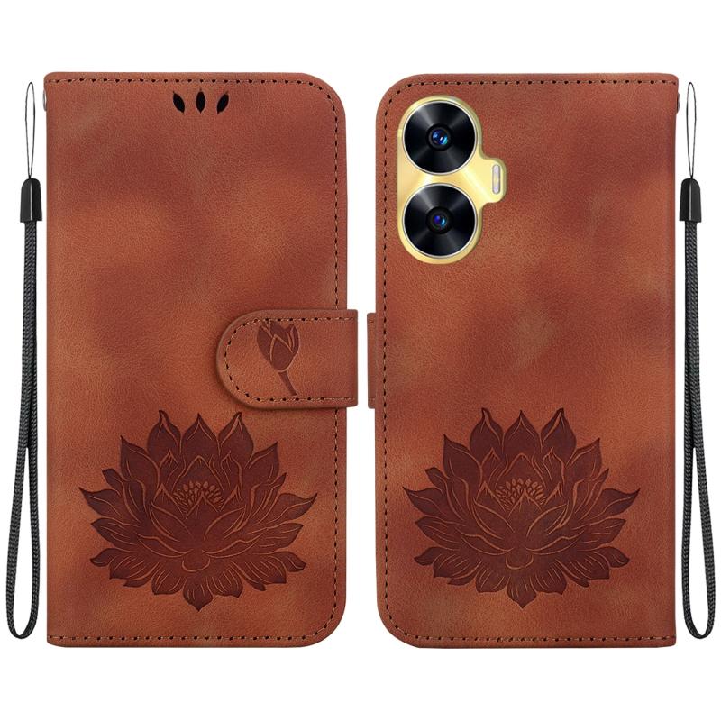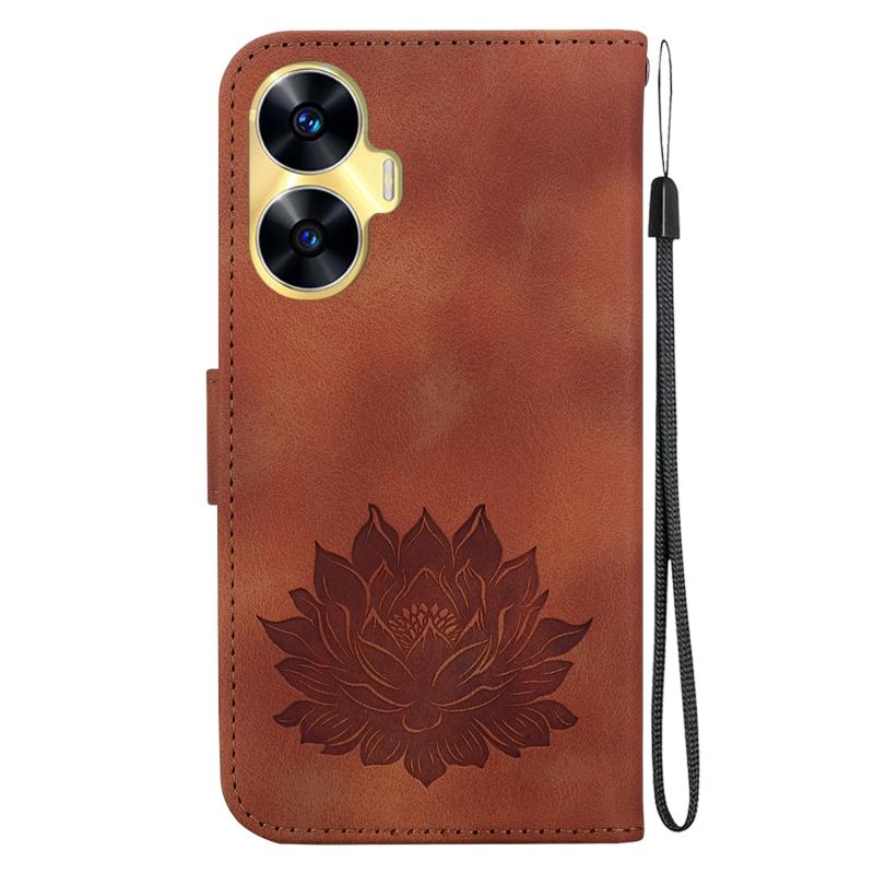 For Realme C55 / Narzo N55 Lotus Embossed Leather Phone Case(Brown)