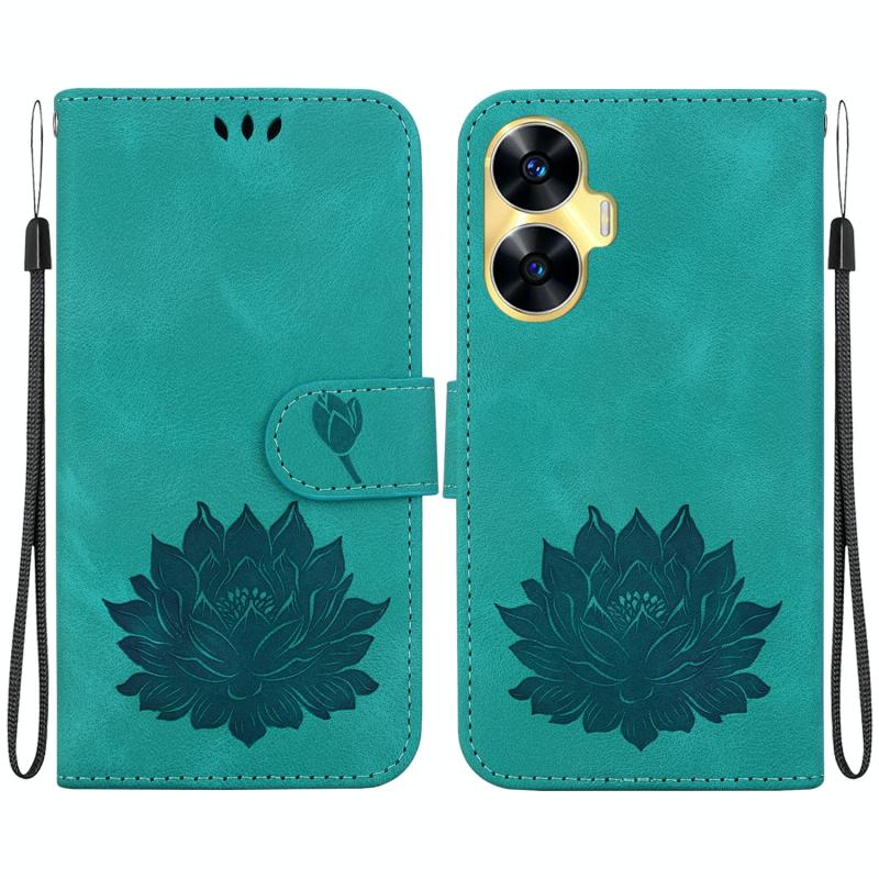 For Realme C55 / Narzo N55 Lotus Embossed Leather Phone Case(Green)