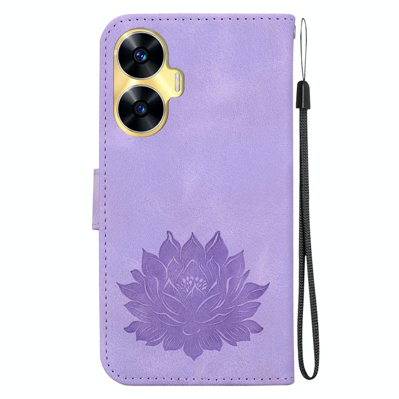 For Realme C55 / Narzo N55 Lotus Embossed Leather Phone Case(Purple)