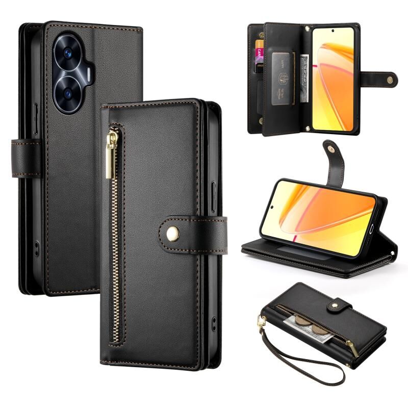 For Realme C55 / Narzo N55 Nine Card-slot Zipper Wallet Bag Leather Phone Case(Black)