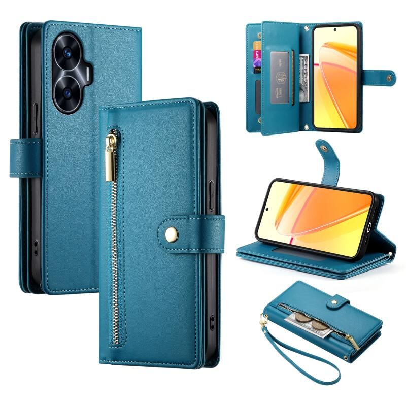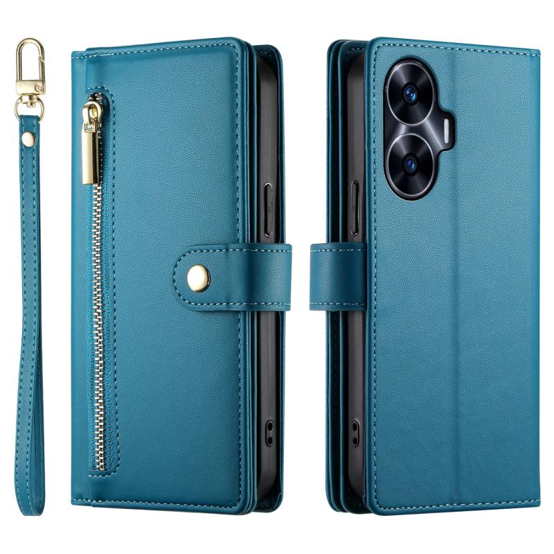 For Realme C55 / Narzo N55 Nine Card-slot Zipper Wallet Bag Leather Phone Case(Blue)