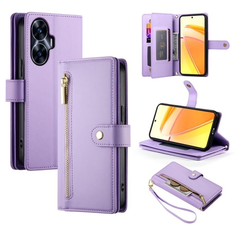 For Realme C55 / Narzo N55 Nine Card-slot Zipper Wallet Bag Leather Phone Case(Purple)