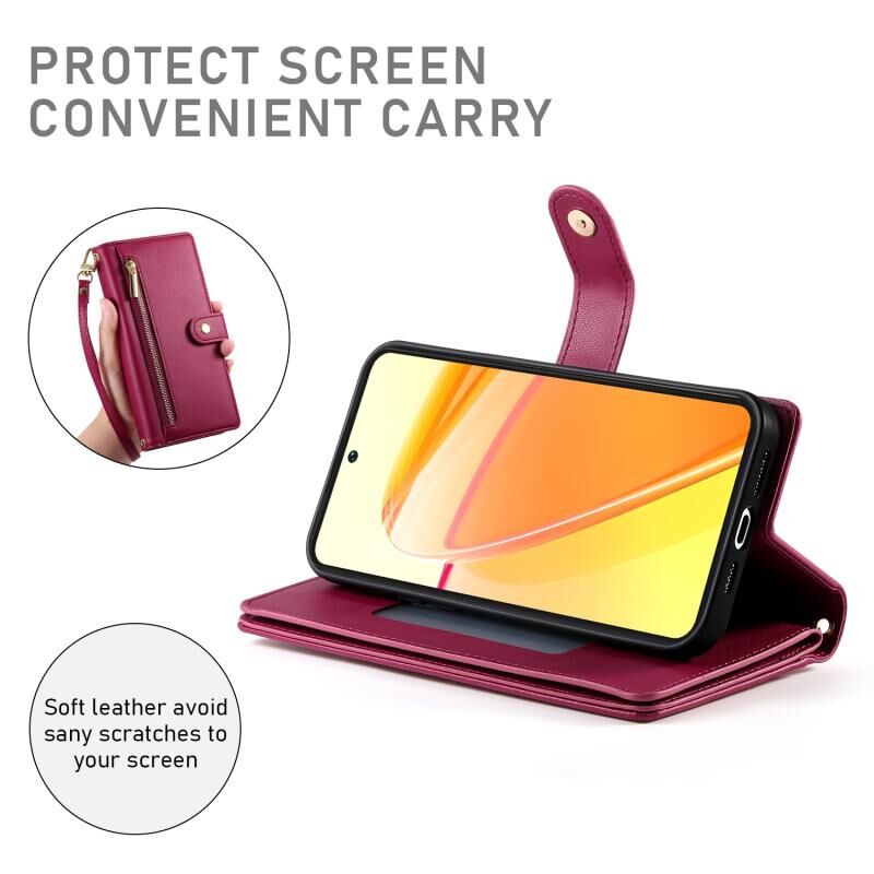 For Realme C55 / Narzo N55 Nine Card-slot Zipper Wallet Bag Leather Phone Case(Red)