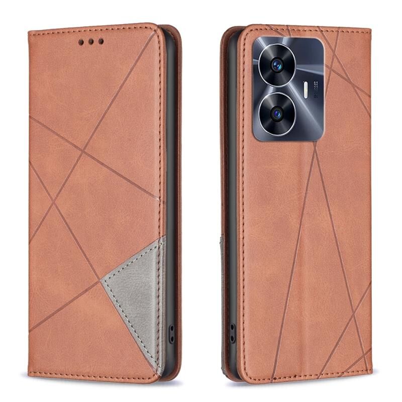 Για το Realme C55 Prismatic Invisible μαγνητική δερμάτινη θήκη τηλεφώνου (καφέ)
