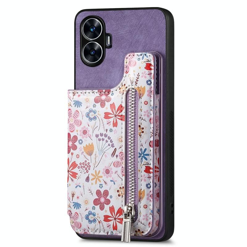 Για Realme C55 Ρετρό ζωγραφισμένο φερμουάρ πορτοφόλι πίσω υπόθεση τηλεφώνου (μωβ)