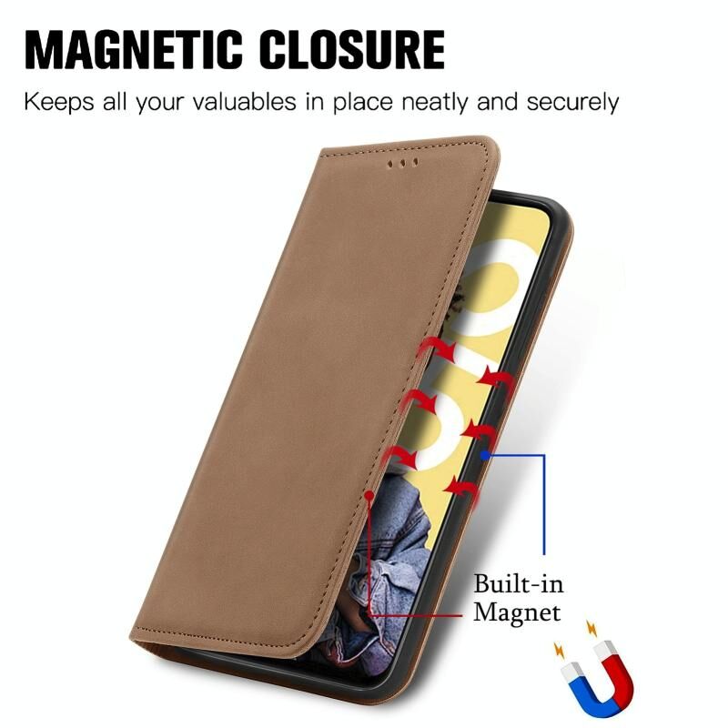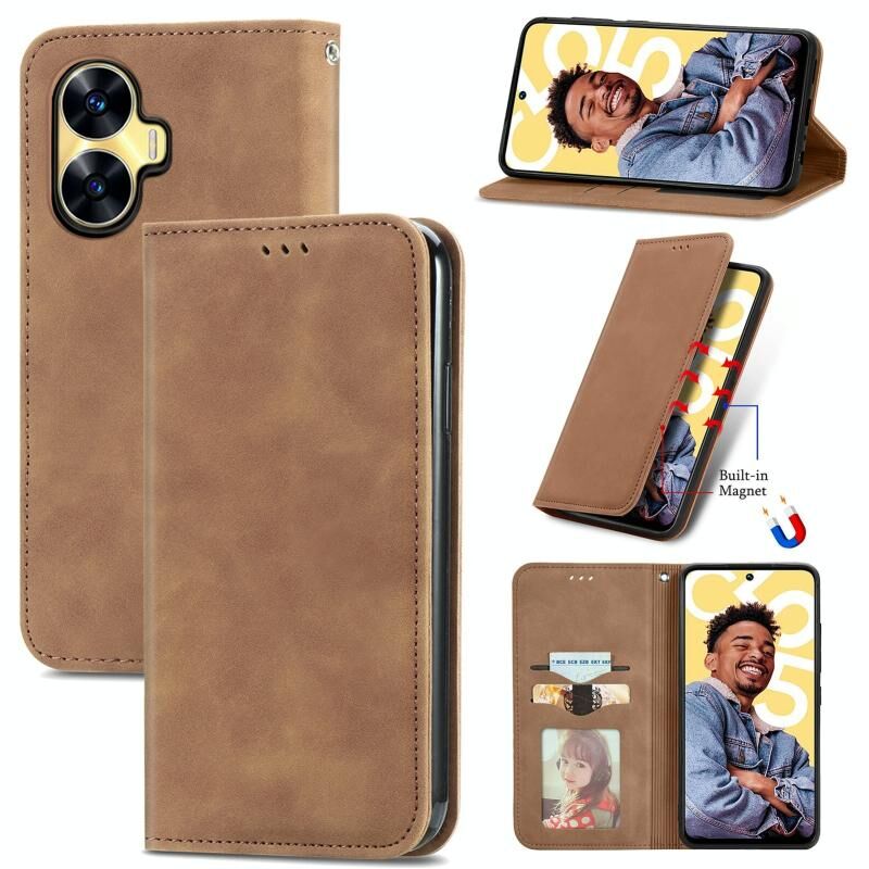 Για Realme C55 Ρετρό δέρμα αίσθηση μαγνητικό δέρμα τηλέφωνο υπόθεση (καφέ)