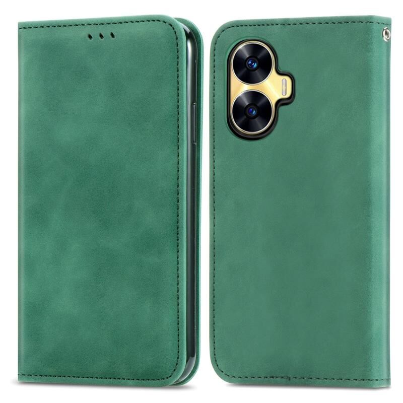 Για Realme C55 Ρετρό δέρμα αίσθηση μαγνητικό δέρμα τηλέφωνο υπόθεση (πράσινο)
