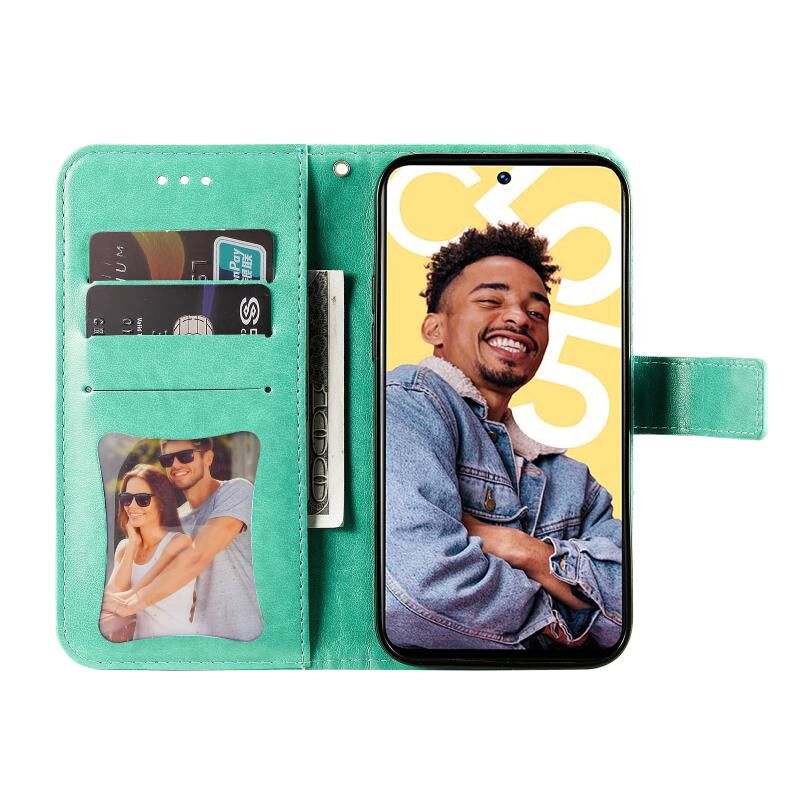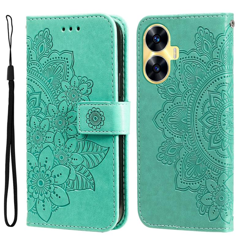 For Realme C55 Seven-petal Flowers Embossing Leather Phone Case(Green)