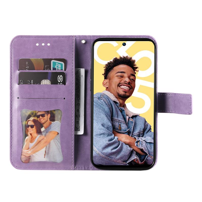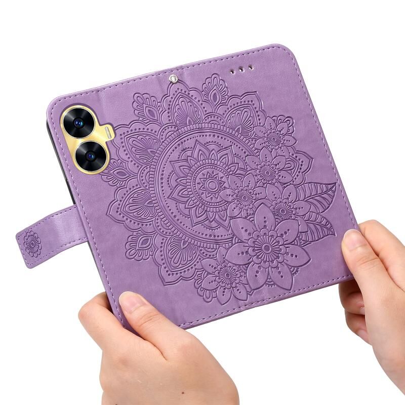 For Realme C55 Seven-petal Flowers Embossing Leather Phone Case(Light Purple)