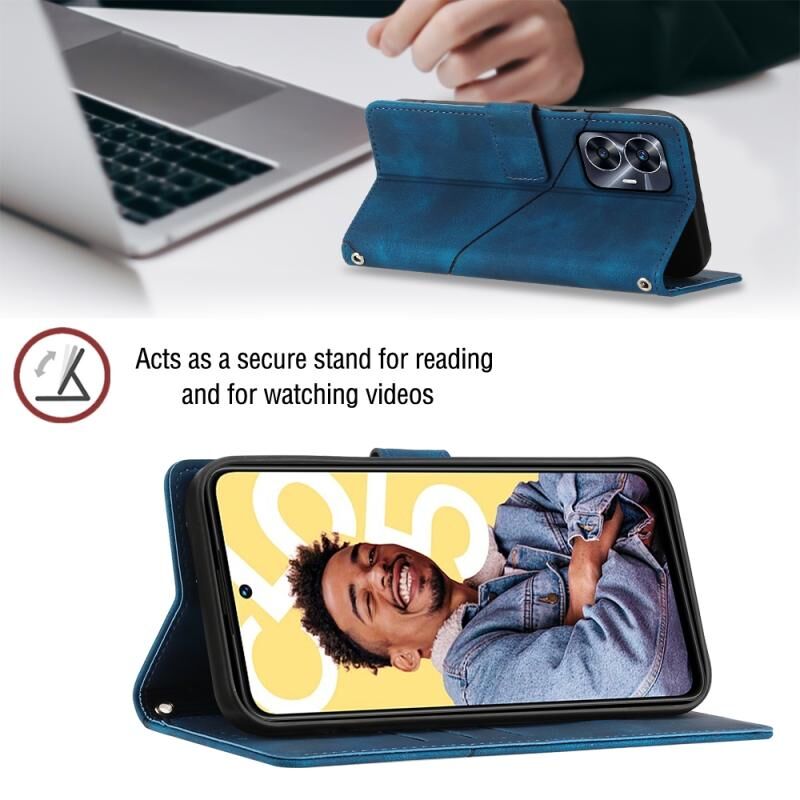 Για Realme C55 Skin-feel ανάγλυφη δερμάτινη θήκη τηλεφώνου (μπλε)