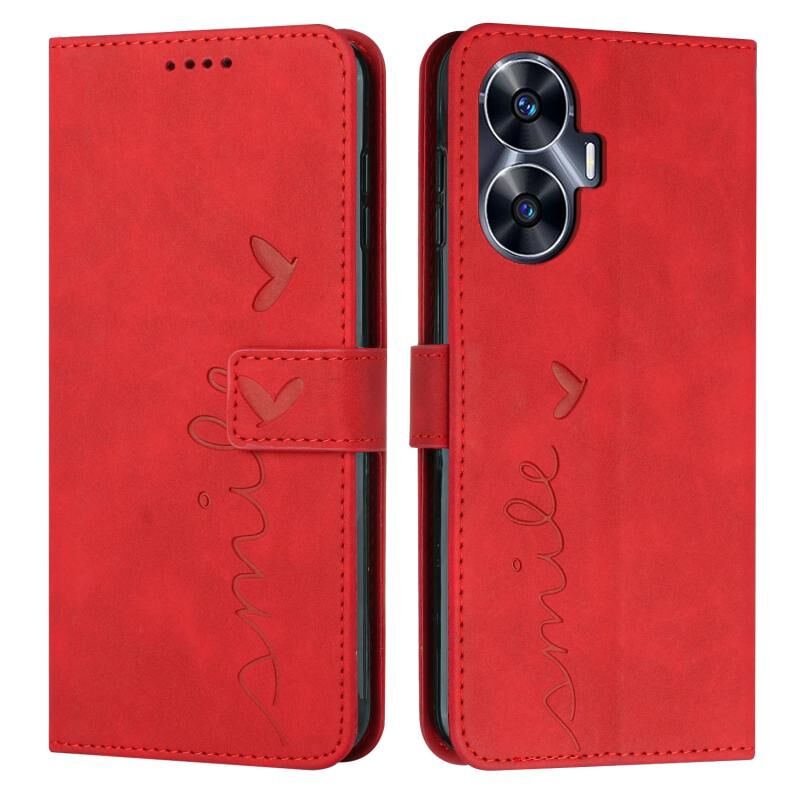 Για Realme C55 δέρμα αίσθηση καρδιά μοτίβο δερμάτινη θήκη τηλεφώνου (κόκκινο)
