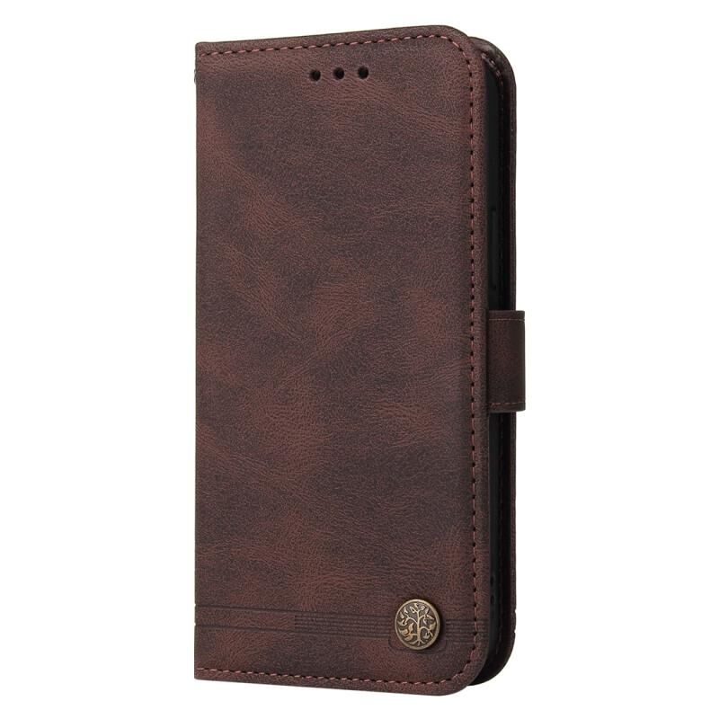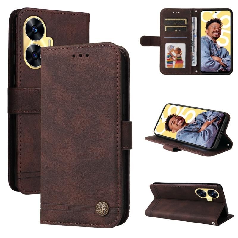 For Realme C55 Skin Feel Life Tree Metal Button Leather Phone Case(Brown)