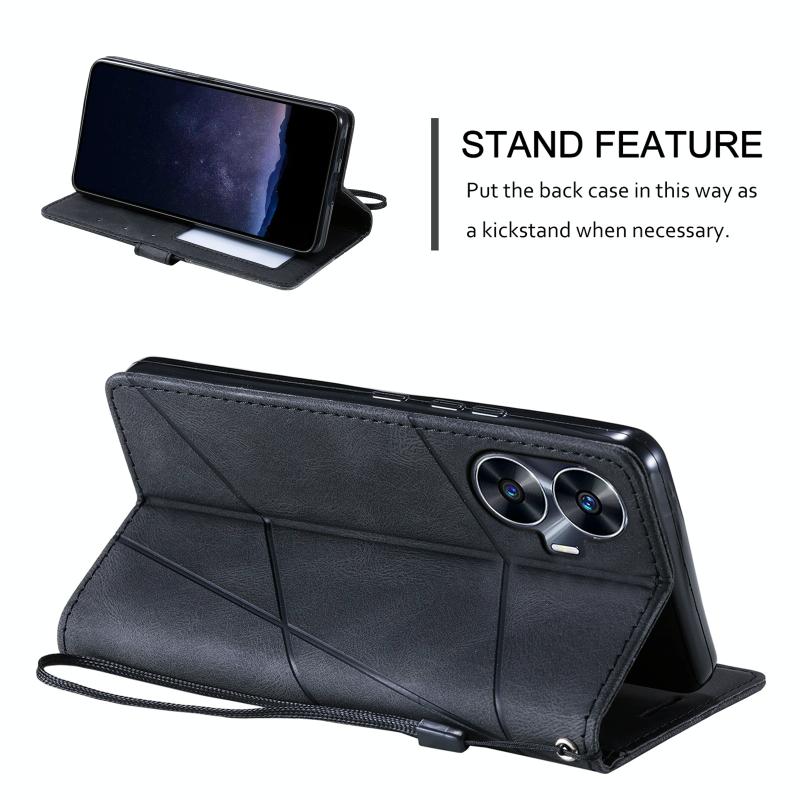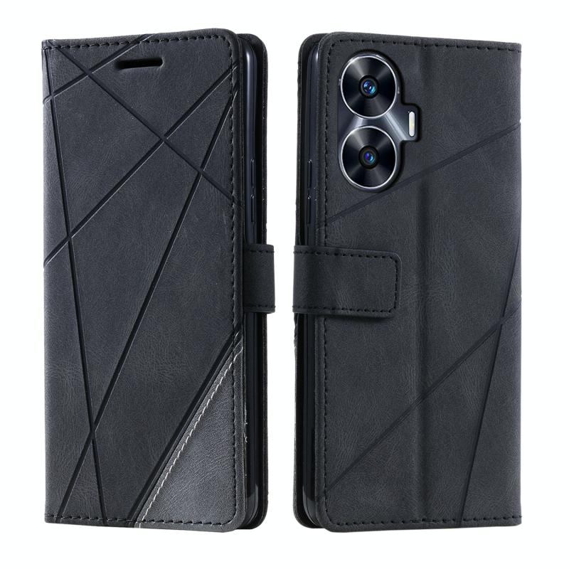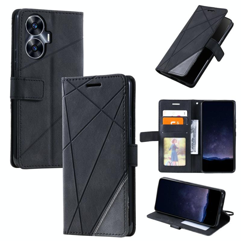 For Realme C55 Skin Feel Splicing Leather Phone Case(Black)