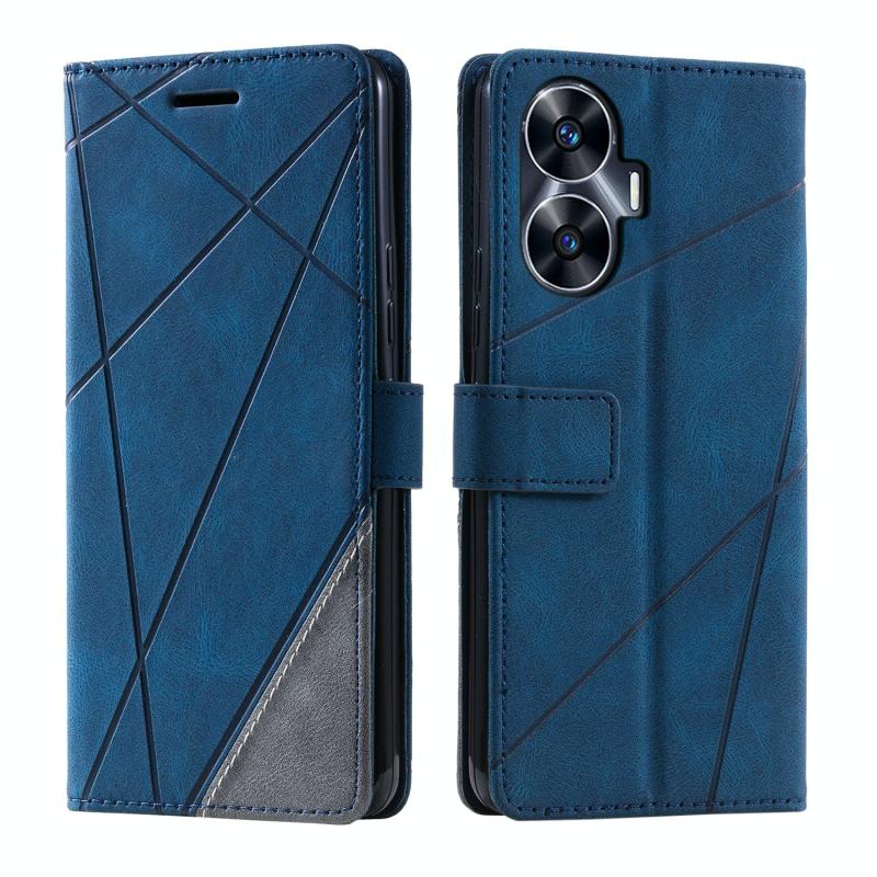 For Realme C55 Skin Feel Splicing Leather Phone Case(Blue)