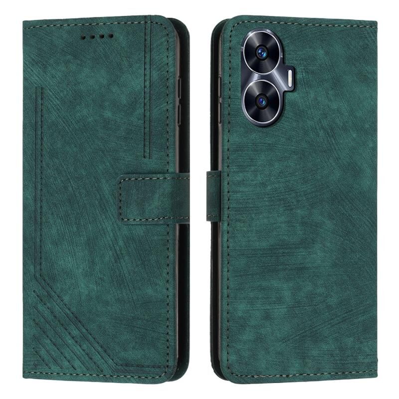 For Realme C55 Skin Feel Stripe Pattern Leather Phone Case with Lanyard(Green)