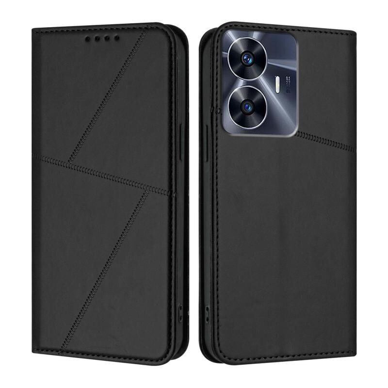 For Realme C55 Strong Magnetic Frosted Flip Leather Phone Case(Black)