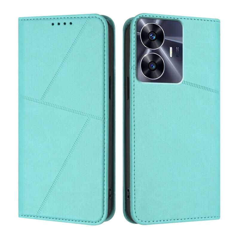 For Realme C55 Strong Magnetic Frosted Flip Leather Phone Case(Light Blue)