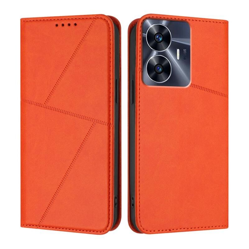 For Realme C55 Strong Magnetic Frosted Flip Leather Phone Case(Orange)
