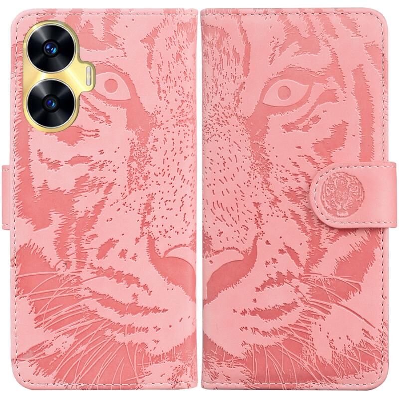 Θήκη τηλεφώνου από δέρμα με σχέδιο Tiger Embossing για Realme C55 (Μαύρο)