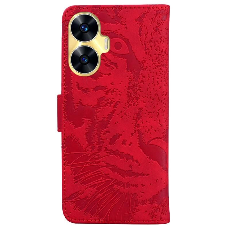 Θήκη τηλεφώνου από δέρμα με σχέδιο Tiger Embossing για Realme C55 (Μαύρο)