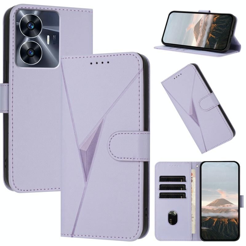 Για Realme C55 Τρίγωνο μοτίβο αγκράφα κούμπωμα δερμάτινη θήκη τηλεφώνου (Light Purple)