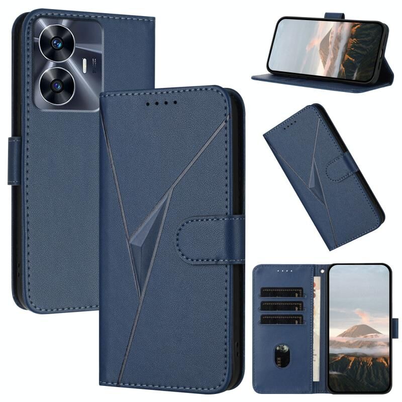 Για Realme C55 Τρίγωνο μοτίβο αγκράφα κούμπωμα δερμάτινη θήκη τηλεφώνου (Royal Blue)