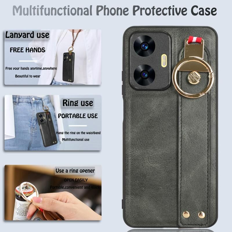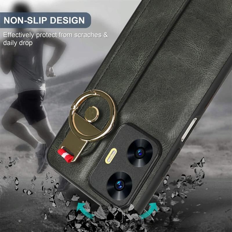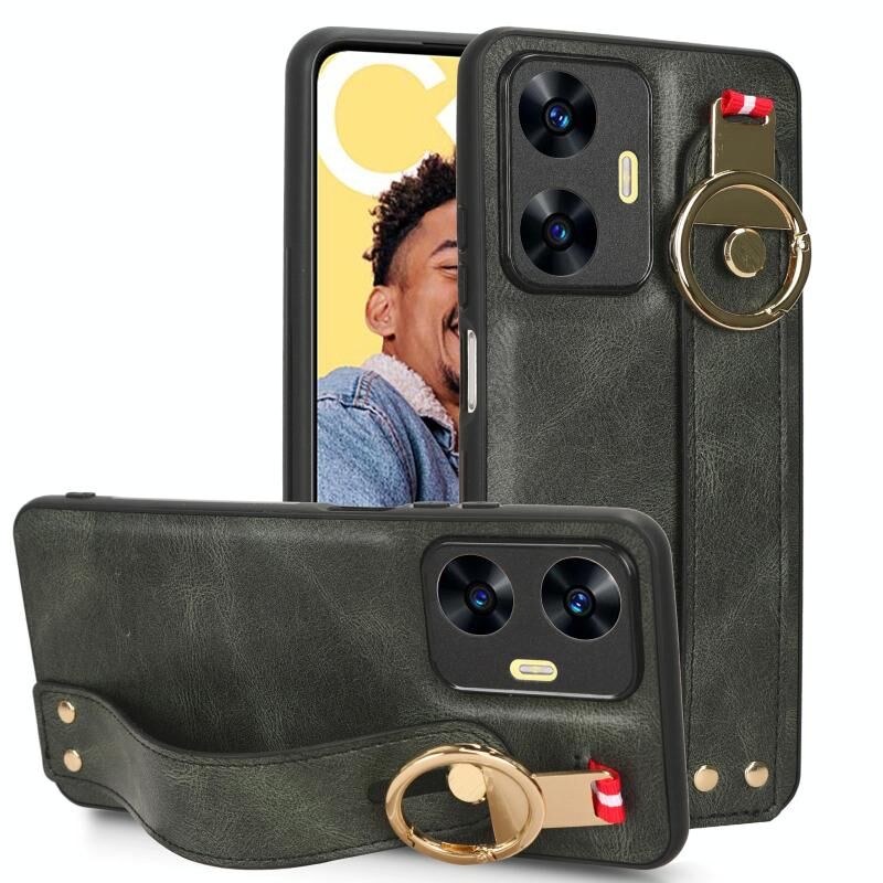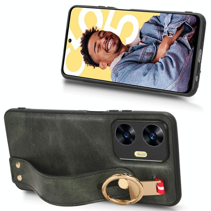 Για Realme C55 Wristband δέρμα πίσω υπόθεση τηλεφώνου (πράσινο)