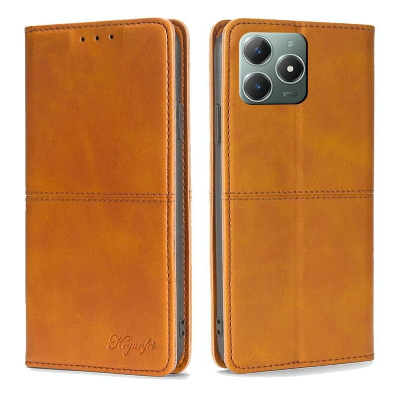 Για Realme C61 4G Cow Texture μαγνητική υπόθεση τηλεφώνου από δέρμα (ανοιχτό καφέ)