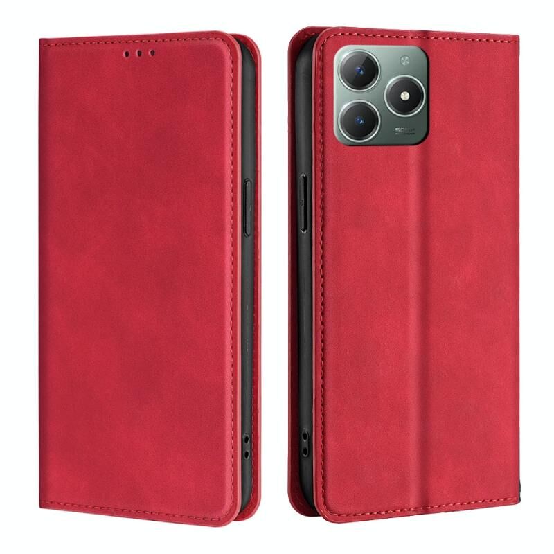 Για Realme C61 4G Skin Feel μαγνητική δερμάτινη θήκη τηλεφώνου (κόκκινο)